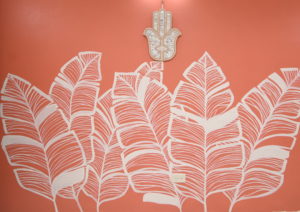 If your room has a niche, it’s the perfect spot for extra colour. This banana leaves mural painted by Kesia Estwick (Millennial & Mystic) livens up a boho-themed interior featured on Rental to Home.